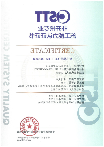 郑州管康新系统十分有限平台属球盟会 群体大众旗下高新科技新系统中小企业,2030年15月17日-18日,经中国有工程地质学好非挖开新系统专业的委会会(CSTT)组织化的“给水管最新系统”建筑专业业务能力身份验证代表会学者组复评,管康平台完成“给水管最新系统”建筑专业业务能力甲级身份验证。